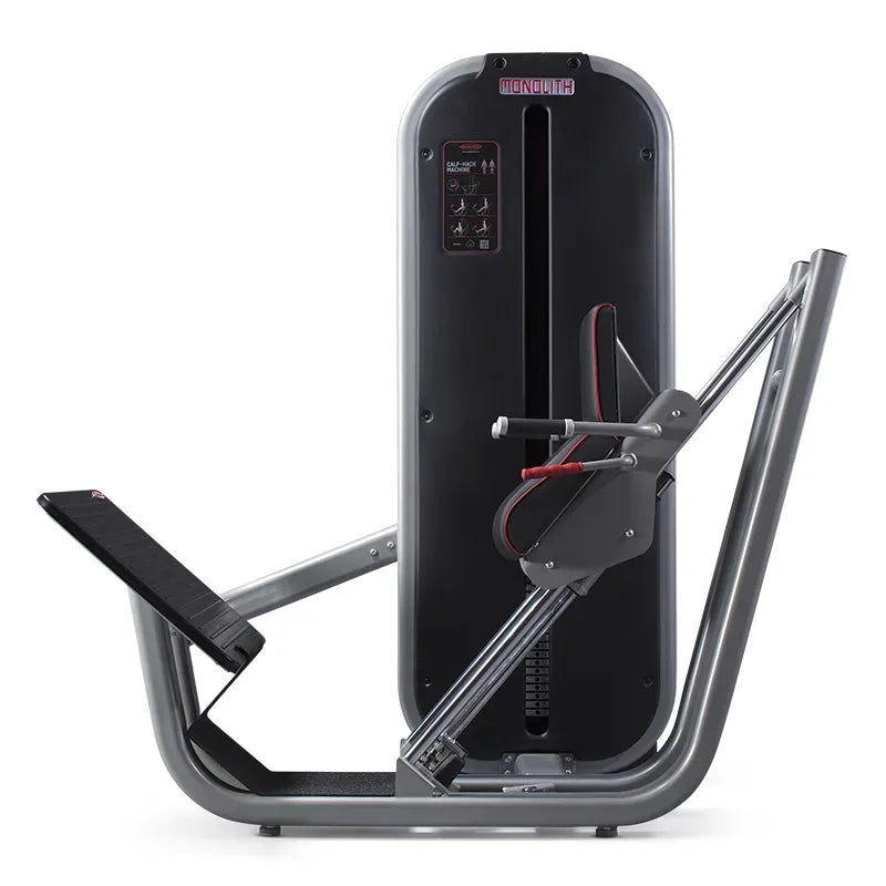 The Calf Hack Machine is designed to fully train lower limb muscles. The wide platform and the seat inclination, allow the user to perform both the movement of Hack squat, both the movement of Calf Raise. The muscles mainly involved in the Hack Squat are all quadriceps muscle bundles as vast intermediate, vast lateral, vast medial and rectus femoral, both the hamstrings and glutes, as a function of how you place your feet in the wide platform. Calf Raise allows you to train your calf muscles such as gastrocnemius and soleus. The machine can be equipped with a Super grip platform (optional) that guarantees greater stability to the support base that results in a greater effectiveness of the technical gesture.