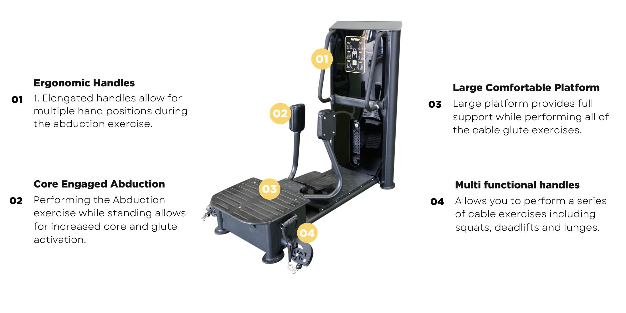 The all-new and patent pending Total Glute™ is a revolutionary way to train all parts of the glute muscles on one machine. Perform a core stabilizing Glute Medius abduction motion with the support of the ergonomic handles. Then move to the platform and use the cable attachments to perform squats, deadlifts and lunges. Maximum versatility in a compact design! The 170 lb weight stack provides a progressive workout for users of all abilities.